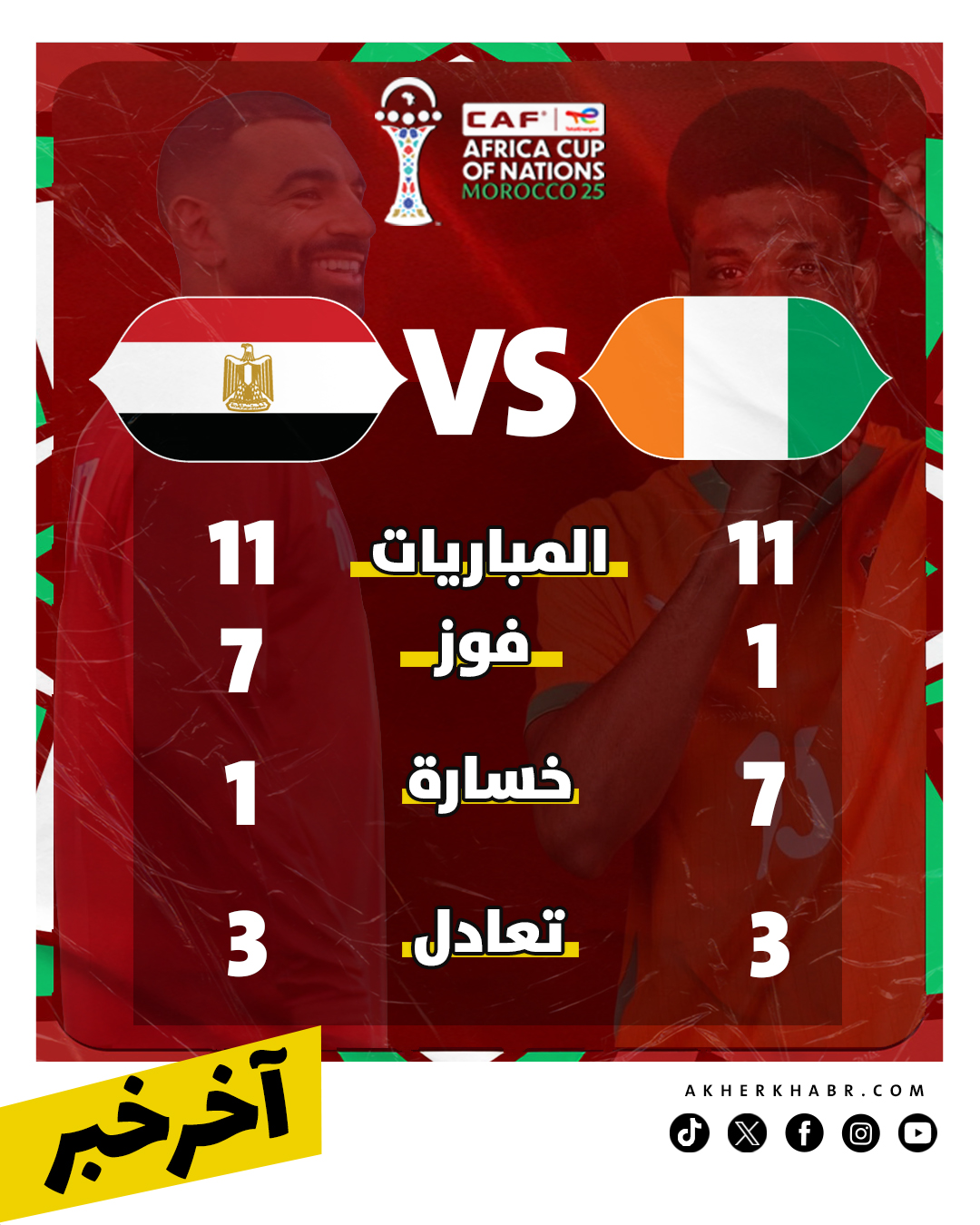 يستعد عشاق كرة القدم لمتابعة مواجهة جديدة بين منتخب مصر وكوت ديفوار المقرر لها السبت المقبل، ضمن منافسات دور الثمانية في بطولة كأس الأمم الأفريقية التى تستضيفها المغرب، حيث تشهد تاريخ اللقاءات بين المنتخبين تفوقًا واضحًا للفراعنة، مما يمنح الفراعنة ثقة كبيرة قبل أي مواجهة قادمة.