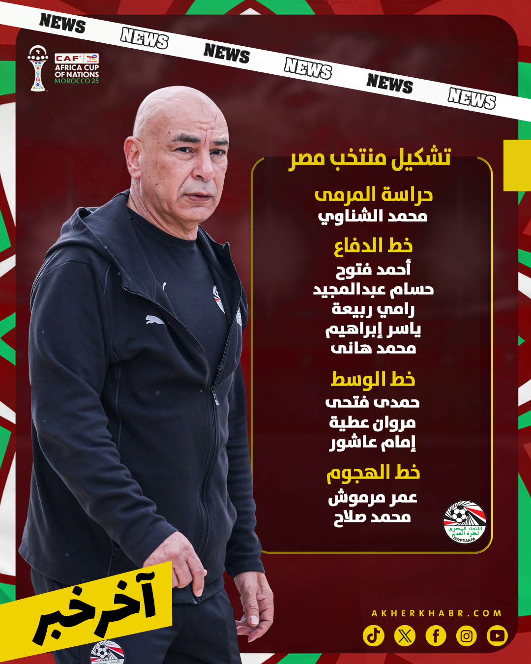 تعكس هذه القائمة رغبة الجهاز الفني في تحقيق التوازن بين التأمين الدفاعي والفعالية الهجومية، مع الاعتماد على عناصر تمتلك الخبرة والجاهزية، في إطار سعي المنتخب لتقديم أداء منظم وتحقيق نتيجة إيجابية دون اندفاع أو مخاطرة غير محسوبة.
