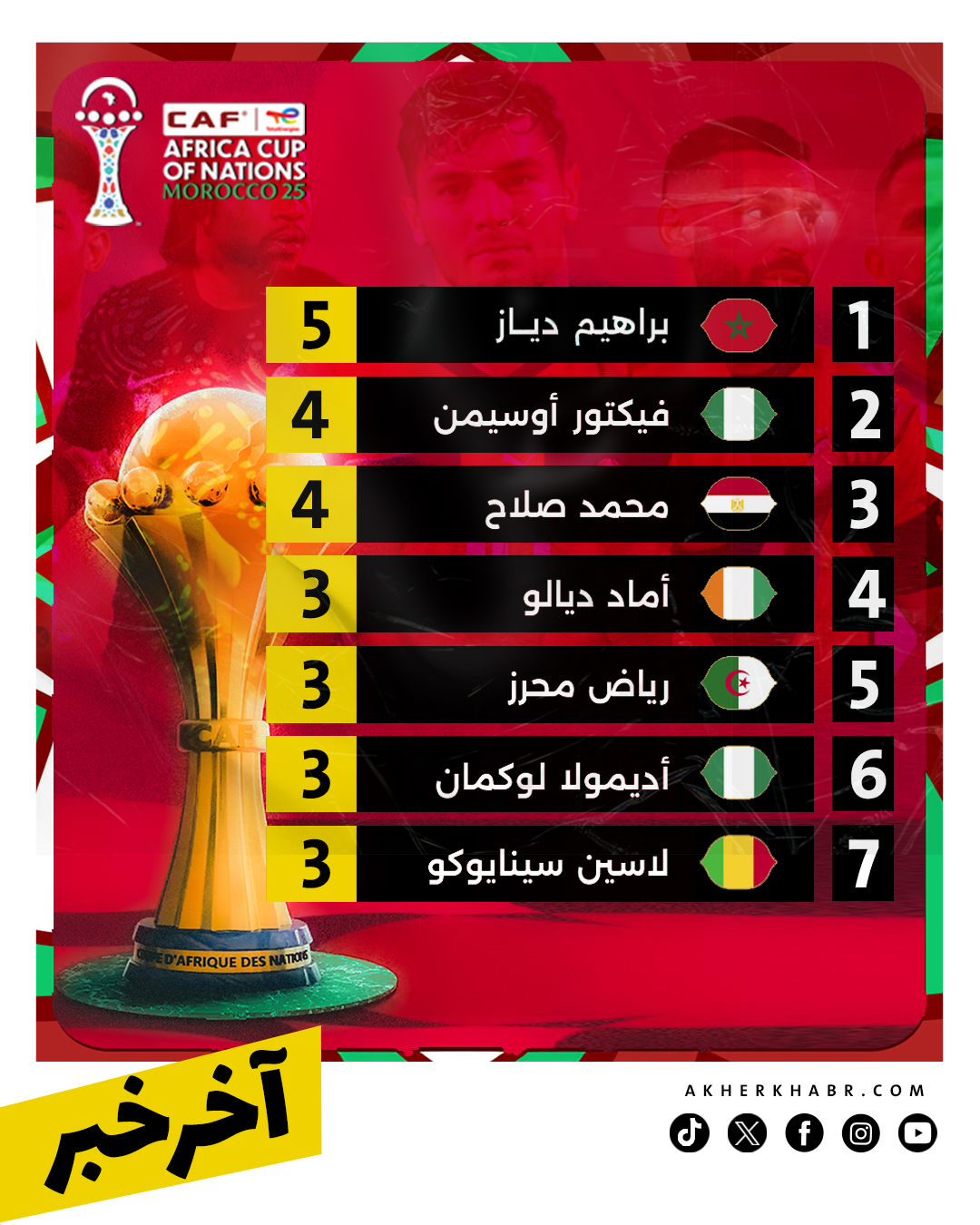 ترتيب هدافي كأس أمم إفريقيا 2025 قبل النهائي