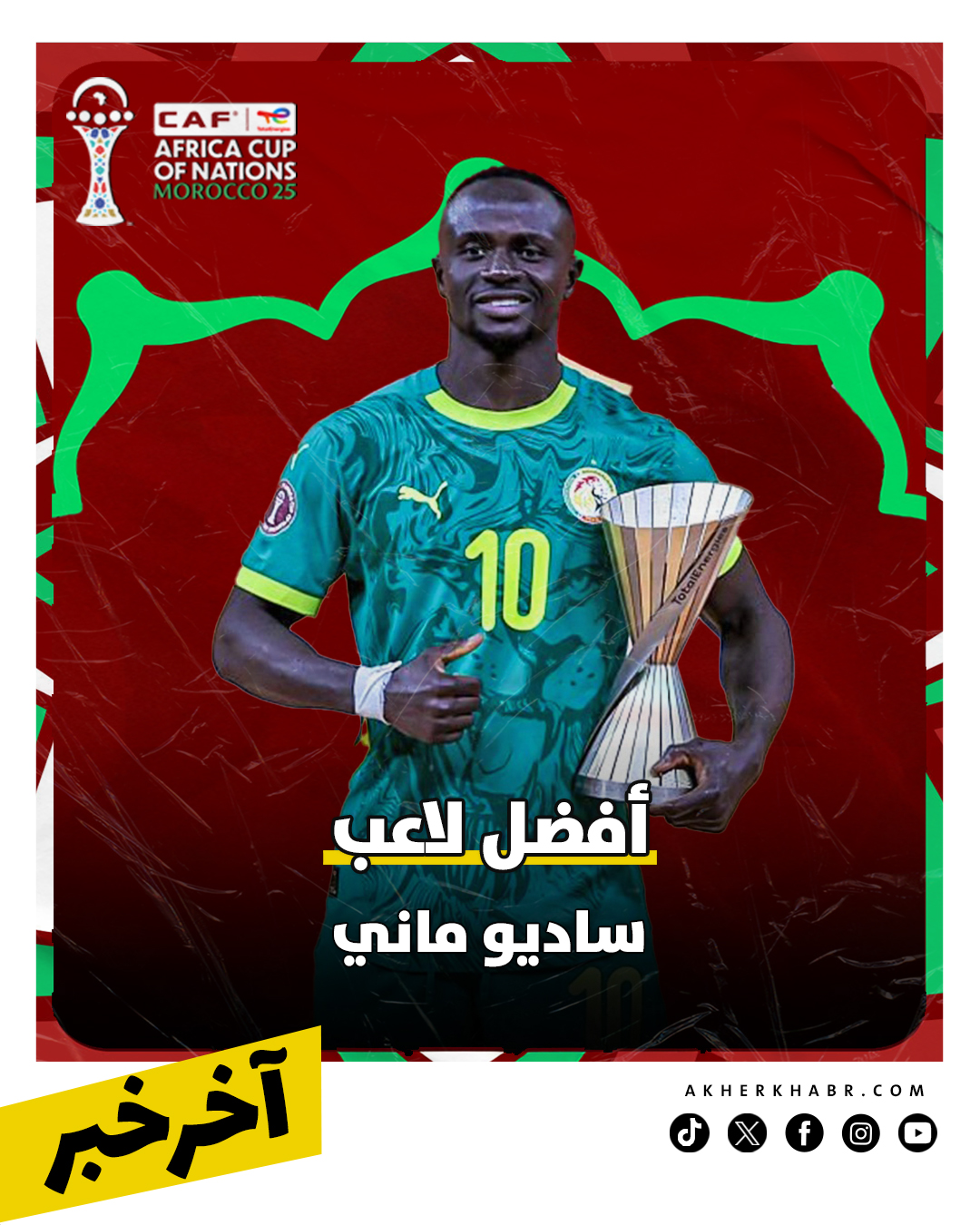 حصد النجم السنغالي ساديو ماني، لاعب نادي النصر السعودي، جائزة أفضل لاعب في بطولة كأس أمم إفريقيا 2025، بعد أداء متكامل جمع بين القيادة والحسم والخبرة، وكان ماني عنصرًا مؤثرًا في مشوار التتويج، وساهم بشكل مباشر في قيادة منتخب بلاده نحو اللقب، ليضيف إنجازًا فرديًا جديدًا إلى مسيرته الحافلة.