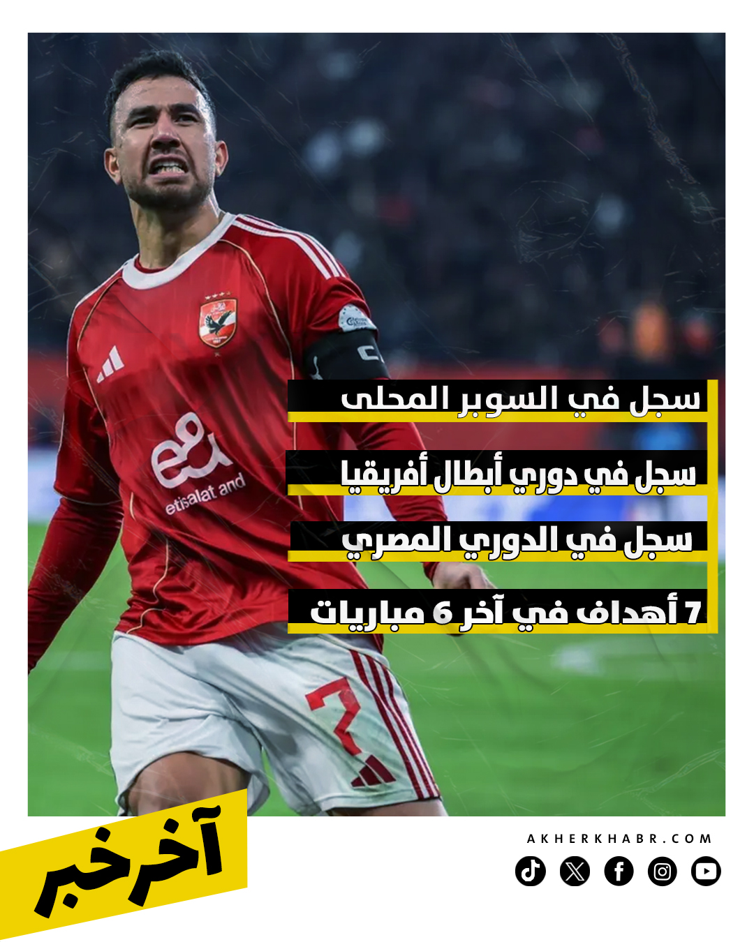 يواصل محمود حسن تريزيجيه صانع ألعاب الأهلى كتابة فصول جديدة من التألق بقميص الأحمر، بعدما تحول في الأسابيع الأخيرة إلى كلمة السر الهجومية وأحد أهم مفاتيح اللعب، حاملاً الفريق على أكتافه في لحظات الحسم، ومسجلاً 7 أهداف خلال آخر 6 مباريات في مختلف البطولات، ليؤكد أنه يعيش واحدة من أفضل فتراته الفنية والتهديفية.