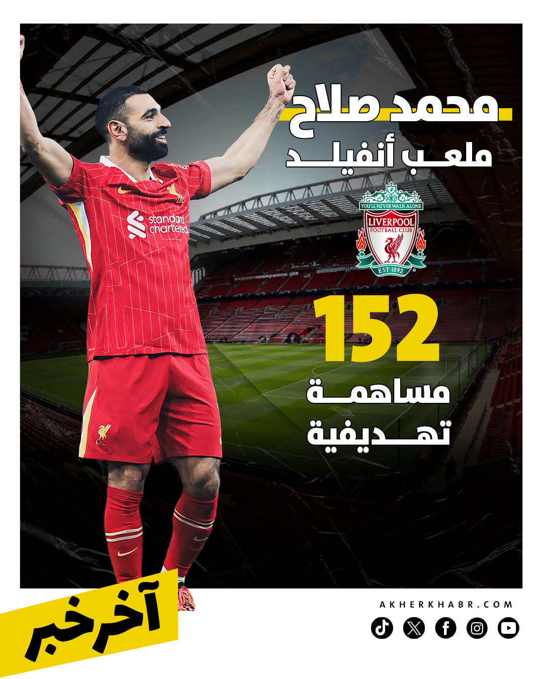 صلاح يتخطى جميع الأرقام القياسية في ملعب أنفيلد