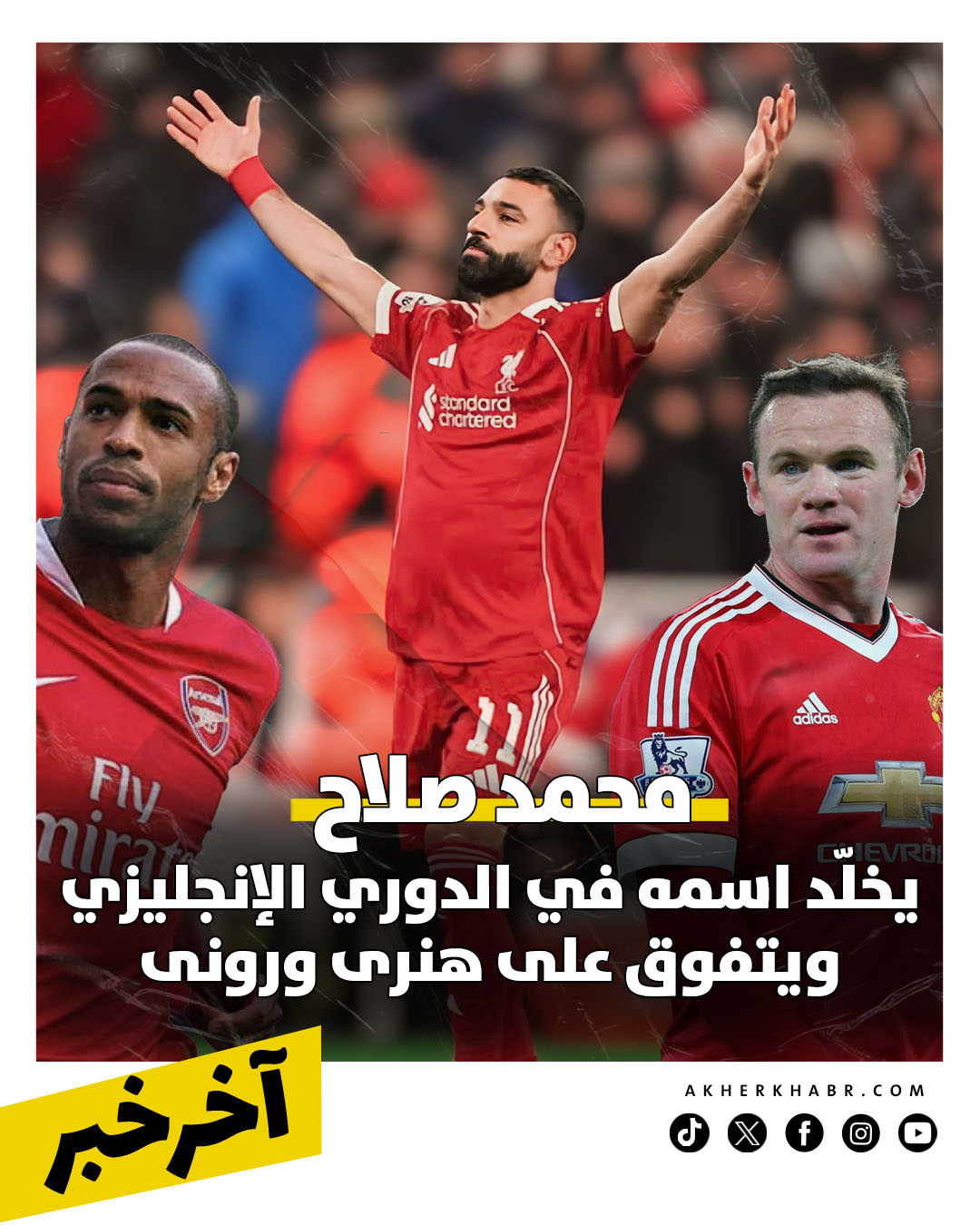 الأرقام توضح الفارق الكبير بين صلاح وزملائه السابقين، حيث تجاوز النجم المصري تييري هنري، الذي ساهم بـ151 هدفًا في ملعب هايبري، وواين روني الذي سجل نفس العدد في أولد ترافورد.