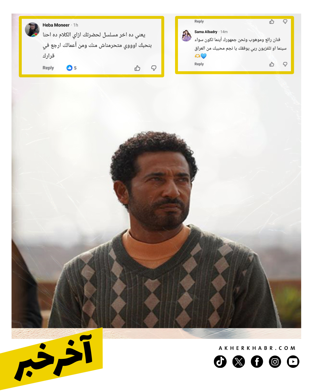وتباينت ردود الفعل في التعليقات على منشوره حول قراره المفاجئ، وعلق أحدهم : رمضان ماينفعش من غيرك، بينما كتب آخر : هما كل الشاطرين بيعتزلوا التلفزيون ليه؟ السنة اللي فاتت محمد سامي وأنت دلوقتي، وعلق آخر : عمرو سعد ماركة مسجلة في عالم الدراما لسه عندك كتير وبالتوفيق في اللي جاي.