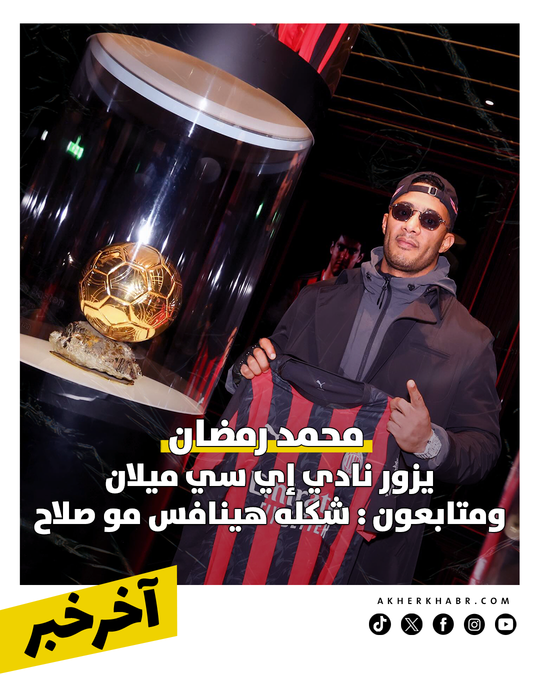 محمد رمضان يزور نادي إي سي ميلان .. ومتابعون : شكله هينافس مو صلاح