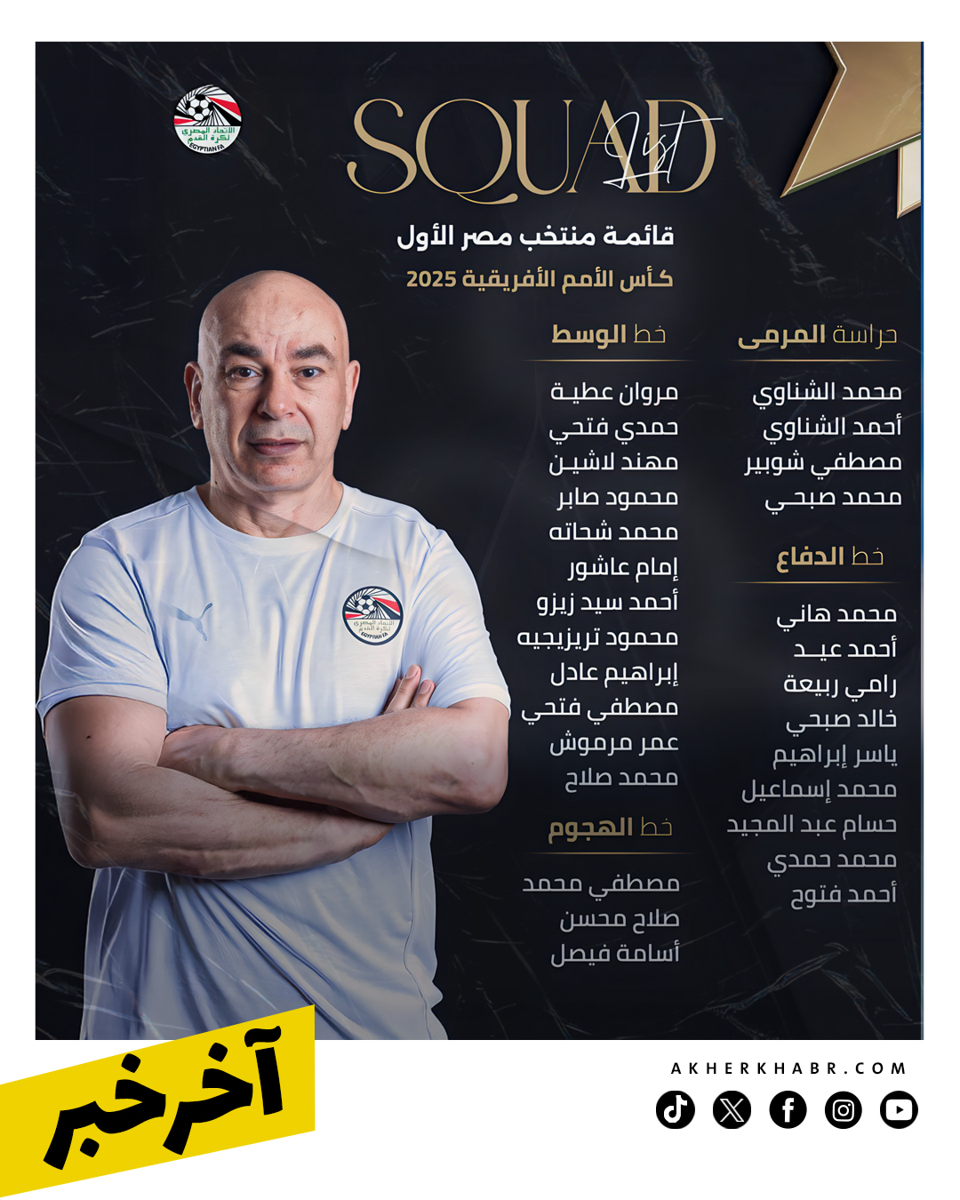أعلن الجهاز الفني لمنتخب مصر الأول لكرة القدم، بقيادة الكابتن حسام حسن، القائمة الأولية للاعبين المقرر مشاركتهم في بطولة كأس الأمم الأفريقية 2025 التي تستضيفها المغرب خلال الفترة من 21 ديسمبر حتى 18 يناير المقبل.