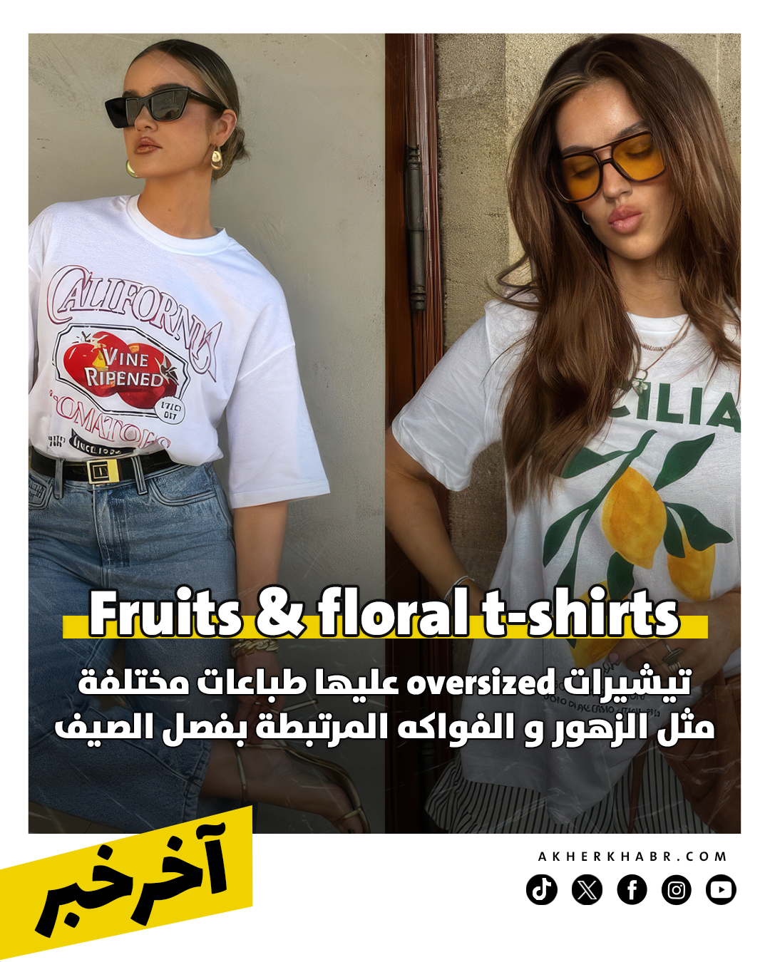 ارتباط الزهور والألوان المبهجة بفصل الربيع أمر مفروغ منه، لكن فى هذا العام بالتحديد ستشهد ظهور تيشيرات oversized عليها طباعات مختلفة مثل الزهور إلي جانب الفواكه المرتبطة فصل الصيف، وربما هذا الستايل يكون المفضل لـ GenZ.
