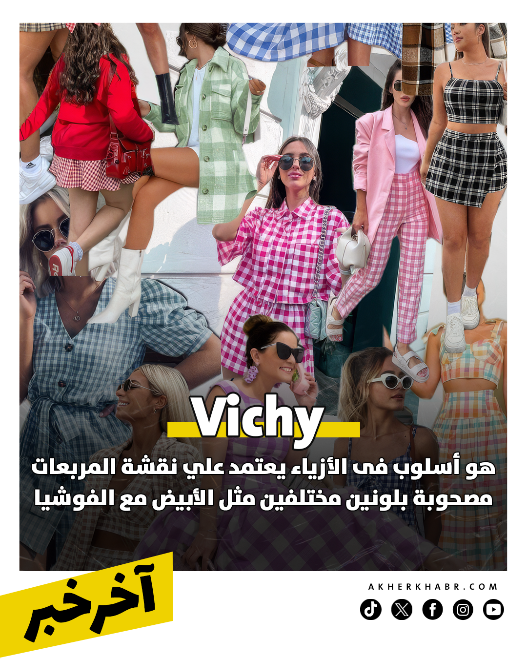 أما vichy ستايل أو فيشي، هو أسلوب فى الأزياء يعتمد علي نقشة المربعات مصحوبة بلونين مختلفين مثل الأبيض مع الفوشيا أو الأحمر أو الأسود، وكل مصمم أزياء يختار التصميم المميز حسب طبيعة كل جسم، سواء باستخدام هذا القماش لعمل جيبة أو قميص أو فيست.