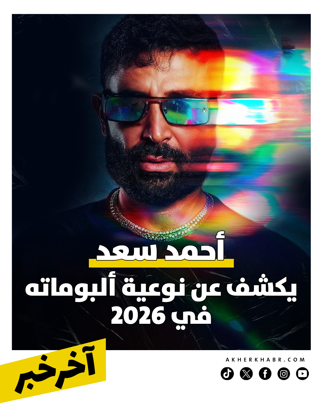 كشف أحمد سعد عبر حسابه الرسمي على إنستجرام عن نوعية ألبوماته في عام 2026، والتي تشمل 5 ألبومات متنوعة، تضم الألبوم الفرفوش، الألبوم الحزين، والألبوم الإلكترو، وألبوم الموسيقى العربية، وألبوم الأوركسترا، ضمن خطة تعتمد على التنوع في تقديم الألوان الغنائية المختلفة.