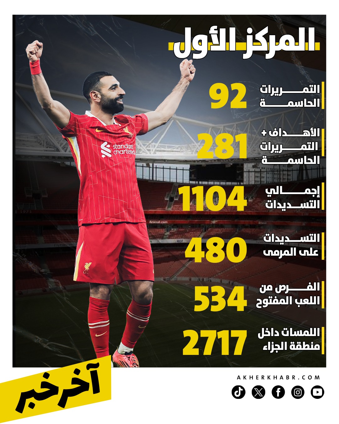 ومع اقتراب نهاية رحلته في الملاعب الإنجليزية، يترك محمد صلاح خلفه إرثًا رقميًا يصعب تكراره، بعدما أعاد كتابة تاريخ اللاعبين الأجانب في البريميرليج، وأثبت أن اللاعب العربي قادر على الوصول إلى قمة كرة القدم العالمية ،وبين الأهداف والإنجازات، تبقى قصة صلاح واحدة من أبرز الحكايات الملهمة في كرة القدم الحديثة، عنوانها العمل، الاستمرارية، وصناعة المجد بالأرقام.