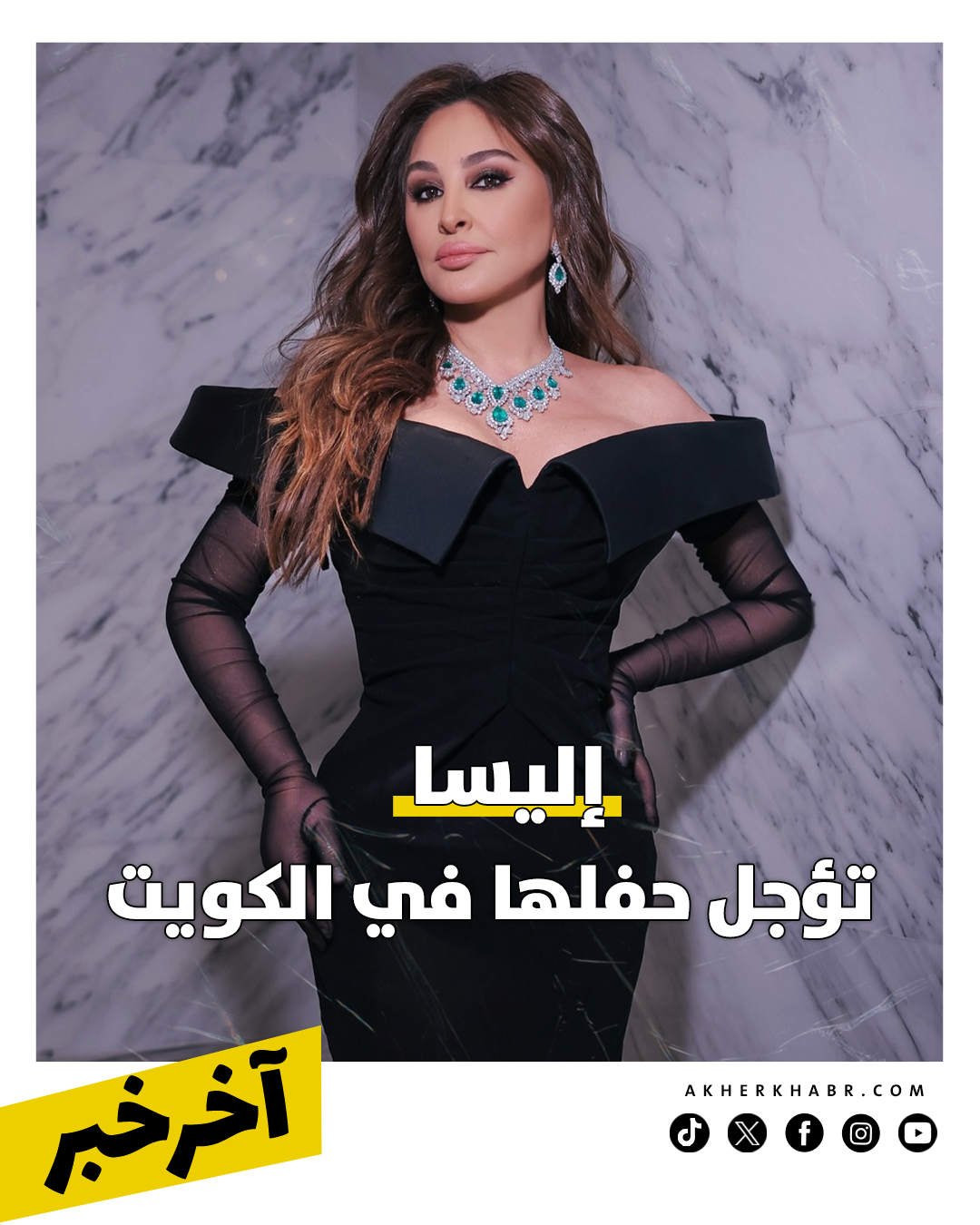 تم تأجيل حفل إليسا الذي كان من المقرر إقامته في الكويت يوم 10 أبريل 2026، داخل مركز الشيخ جابر الأحمد الثقافي، دون تحديد موعد بديل حتى الآن.