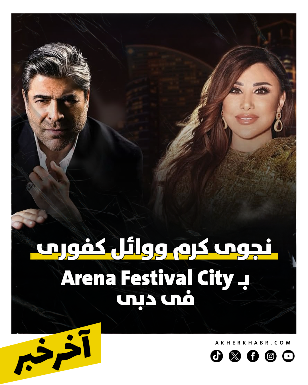 كما تستقبل دبي العام الجديد بحفل يجمع نجوى كرم ووائل كفوري على مسرح دبي فيستيفال سيتي، بينما يحيي أحمد سعد حفلًا ضخمًا يوم 31 ديسمبر على مسرح المجاز بالشارقة.